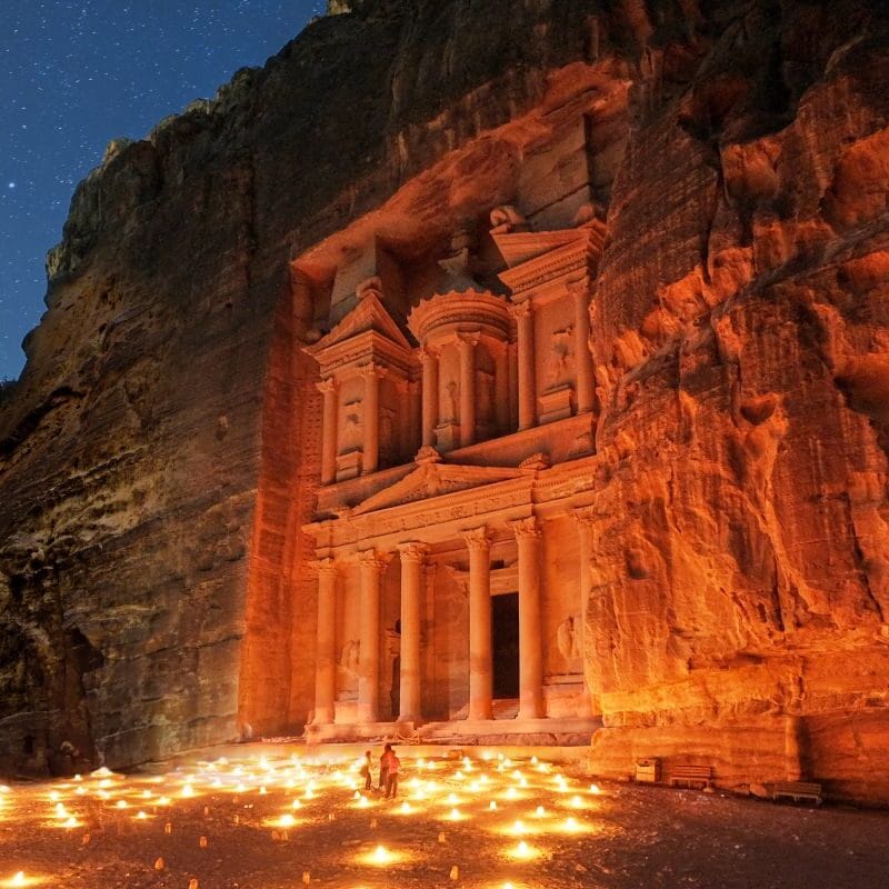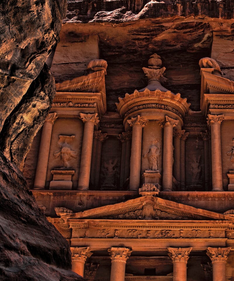 The ancient city of Petra is one of Jordan’s national treasures and by far its best known tourist attraction. Petra is the legacy of the Nabataeans, an industrious Arab people who settled in southern Jordan more than 2,000 years ago. Admired then for its refined culture, massive architecture and ingenious complex of dams and water channels, Petra is a UNESCO World Heritages Site and one of the new Seven Wonders of the World. Inhabited by the Nabateans, Edomites and Romans, Petra brought together the knowledge and skill of these civilizations to create this world wonder. Caravans laden with incense, silks, spices and other exotic goods would rest at Petra.